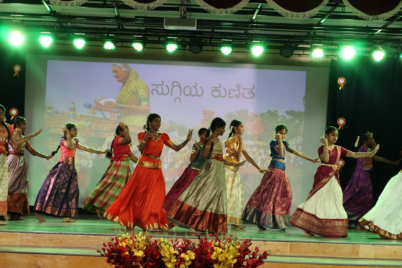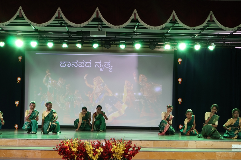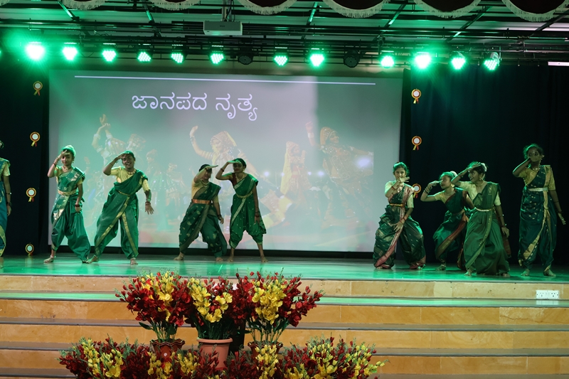 The school celebrated Kannada Rajyotsava with the vibrant theme Janapada Sambhrama, reflecting the richness of Karnataka’s folk culture. Students presented Kolata, Suggi Kunita, Kamsale, folk songs, riddles and a skit. The celebration strengthened students’ pride in Karnataka’s heritage and cultural identity.