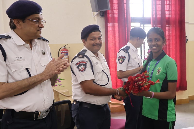 Mr. Satish Rao, Senior Traffic Warden, along with his team of five officers, conducted a second round of road safety training for Grades 8–10. The session focused on road signs, pedestrian rules and essential safety measures. Students gained practical insights into safe and responsible road behaviour.